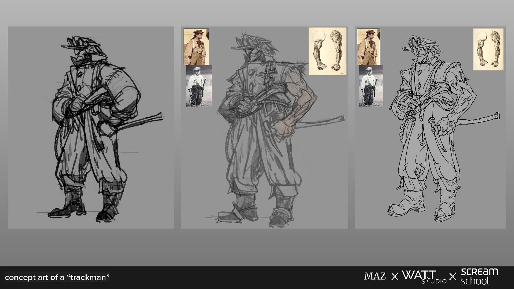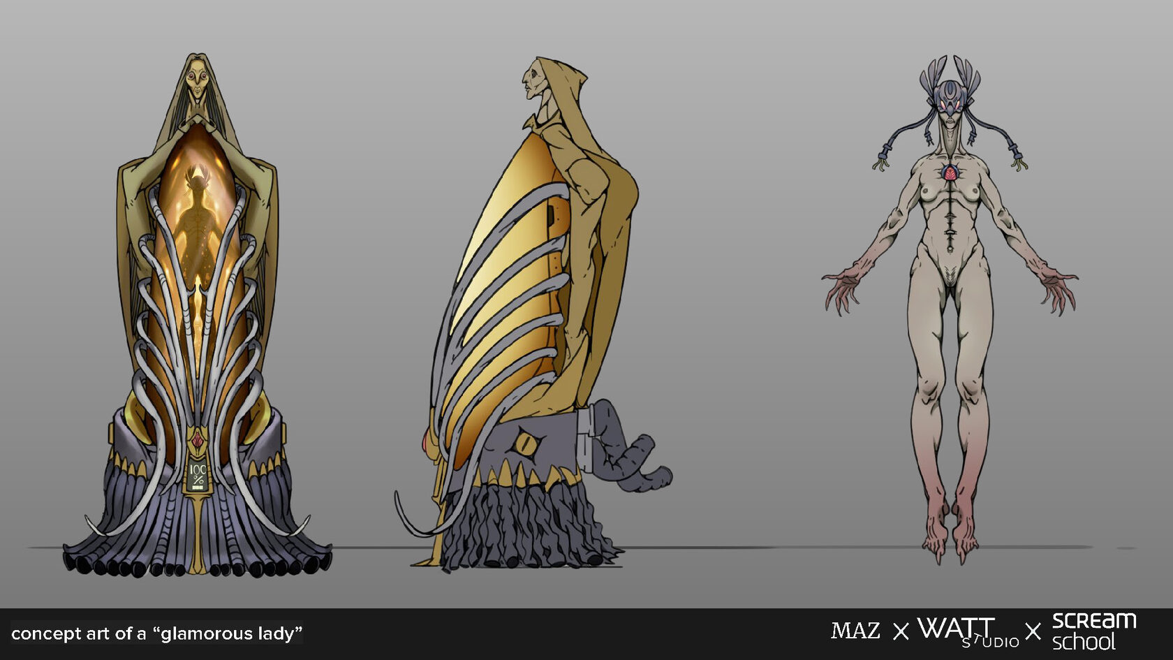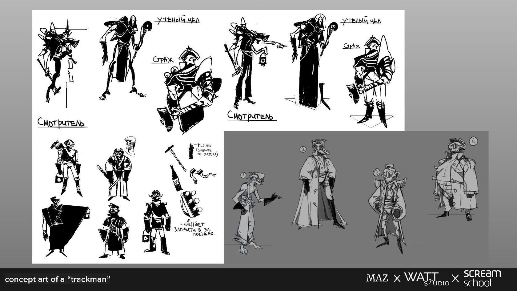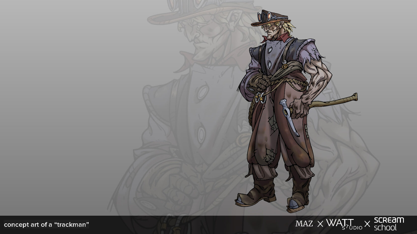 - Сплеш-арт — концепт-арт NPC в локации с акцентом на атмосферу, детали сеттинга и масштабы персонажей, подчеркивающие их роль в игровом пространстве.