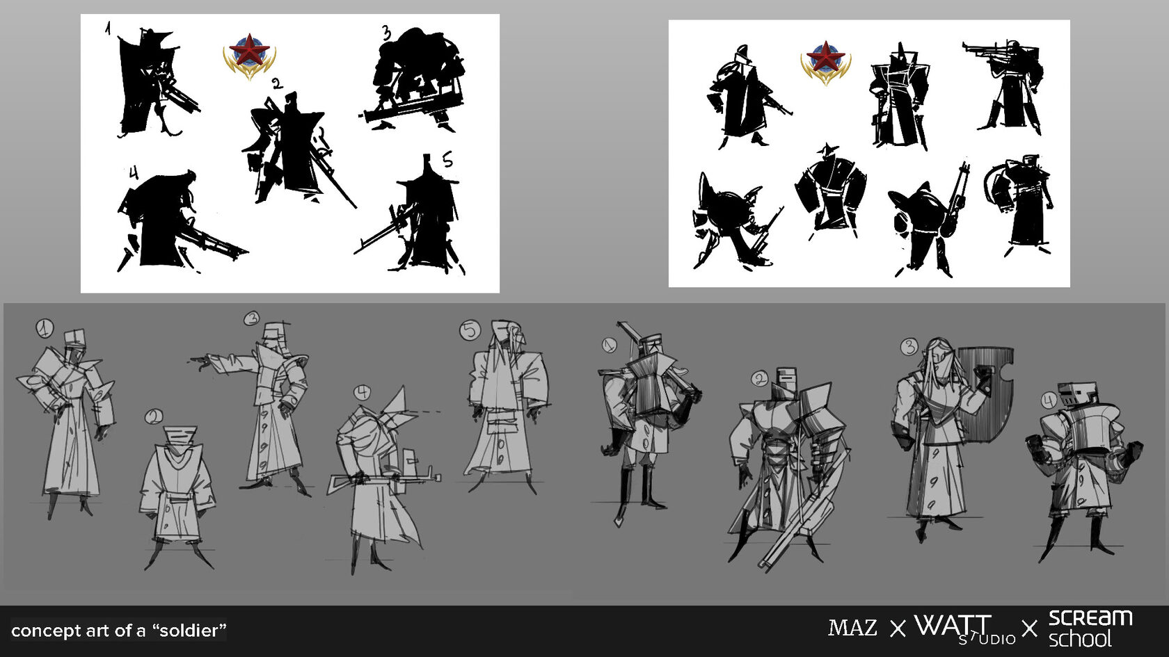 Работа демонстрирует комплексный подход к разработке игровых визуальных элементов: создание персонажей, окружения и оружия в единой стилистике, а также умение передавать атмосферу и характер мира через композицию, детали и визуальные решения.