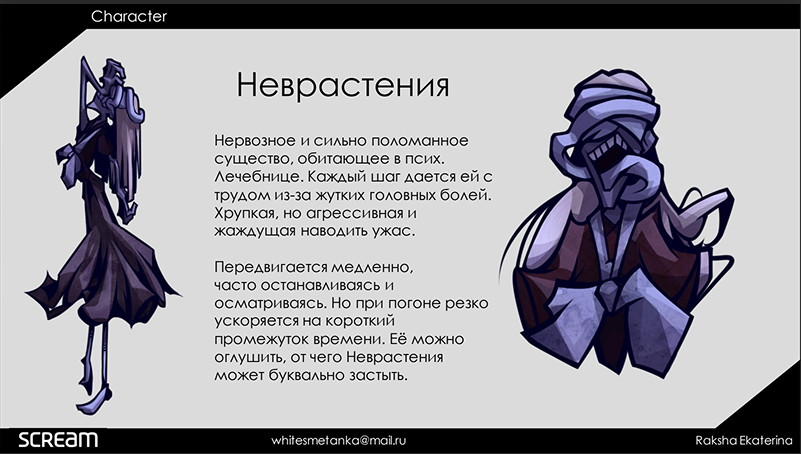 Персональный проект, исследующий мрачную и эмоционально напряжённую атмосферу через визуальный язык персонажей и окружения. Работа фокусируется на передаче внутреннего состояния героя и создании целостного мира, усиливающего драматургию проекта.