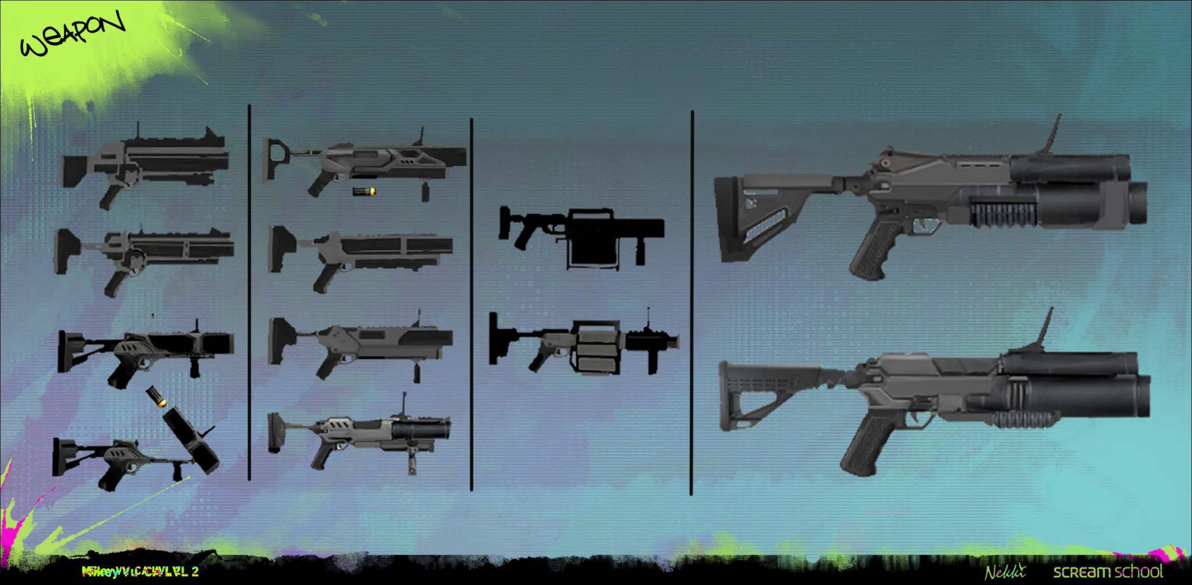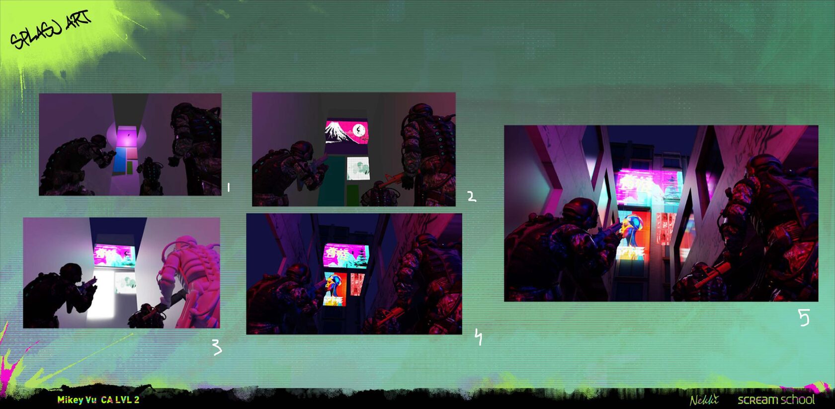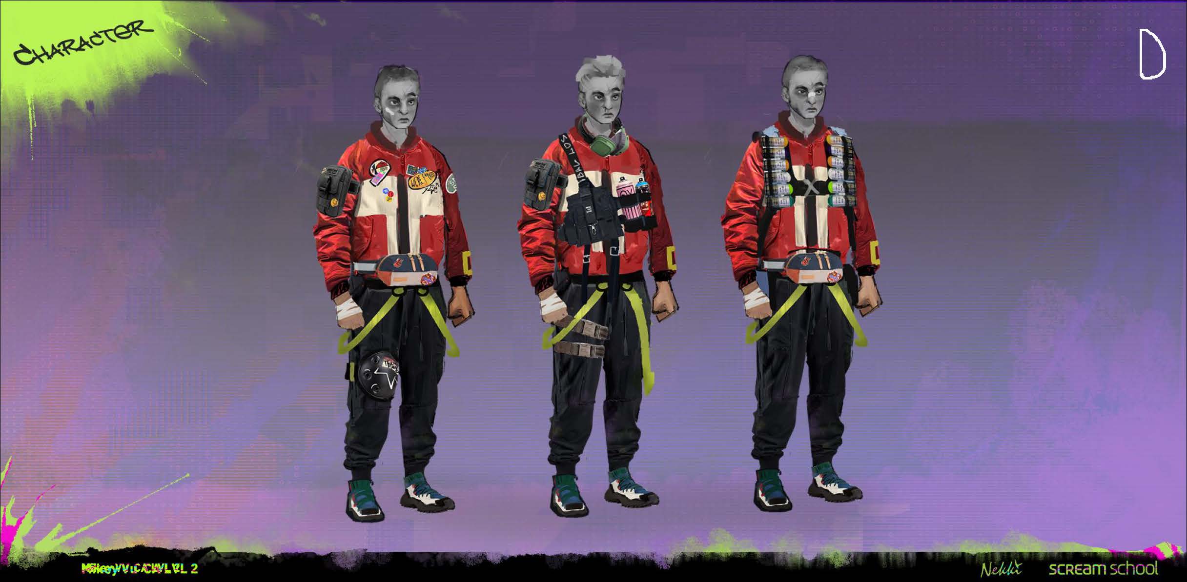 Проект по брифу от студии Nekki по предстоящей игре Spine. SPINE — кинематографичный экшен о перестрелках в стиле ган-фу. Вас ждет боевик, посвященный ближнему бою со стрельбой, в котором вы с мятежной уличной художницей Редлайн и ее разумным боевым имплантом «Спайн» бросите вызов авторитаризму с ИИ, чтобы спасти своего брата.