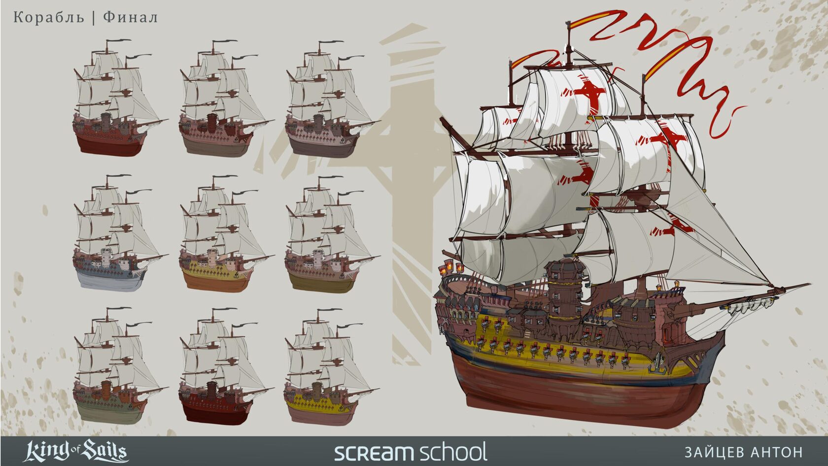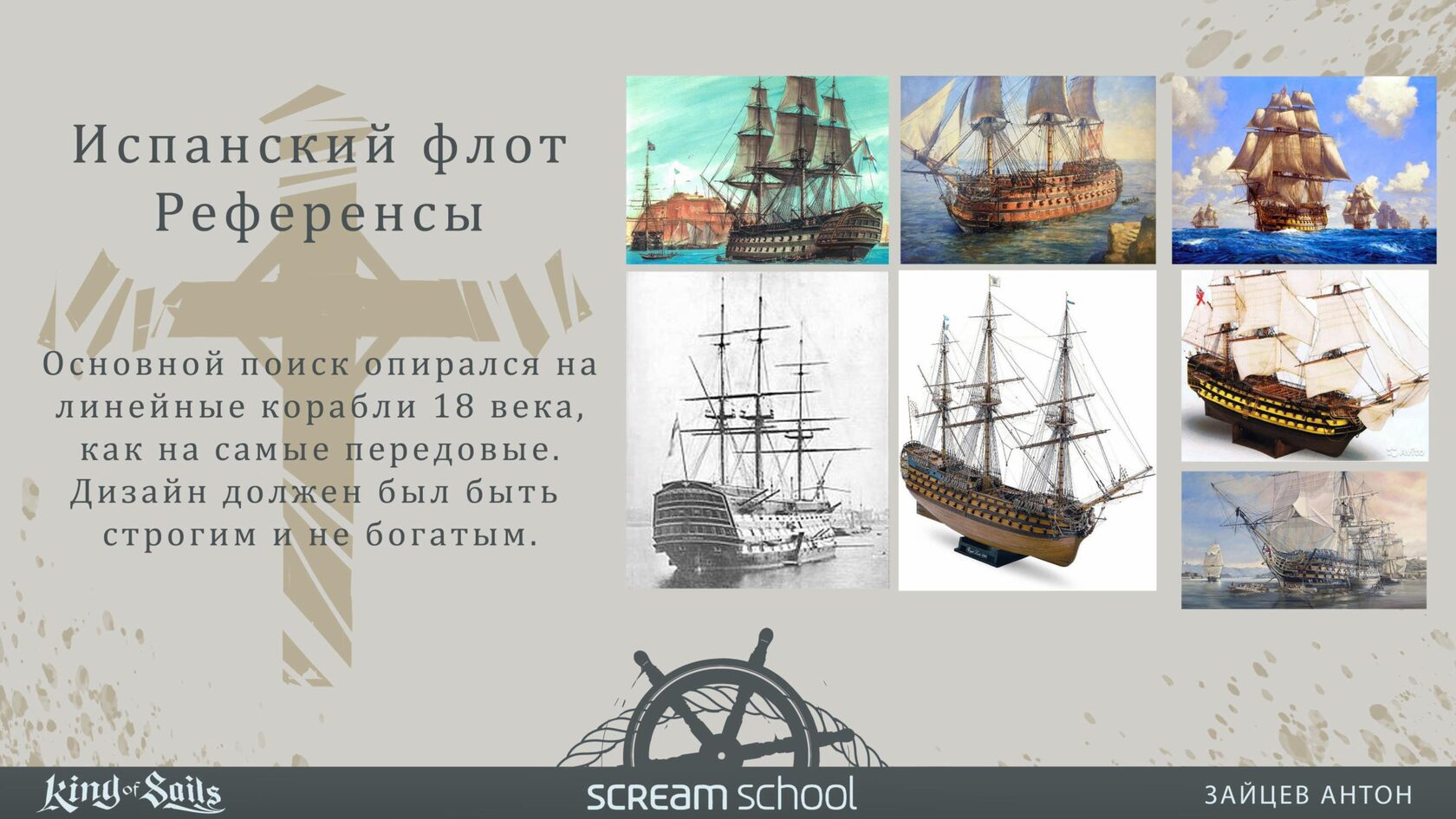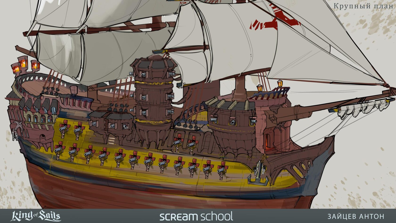 Дипломный проект выполнен по брифу студии Azur Games для мобильной PvP-игры King of Sails, посвящённой морским сражениям кораблей XVIII века. Основной задачей стала разработка визуальной части двух фракций: исторически вдохновлённого испанского флота и фантазийной фракции нежити.
