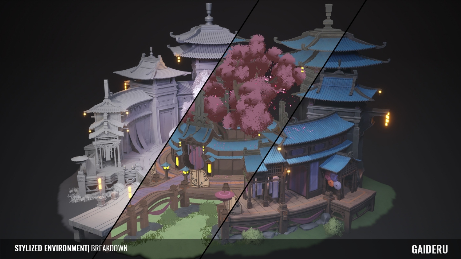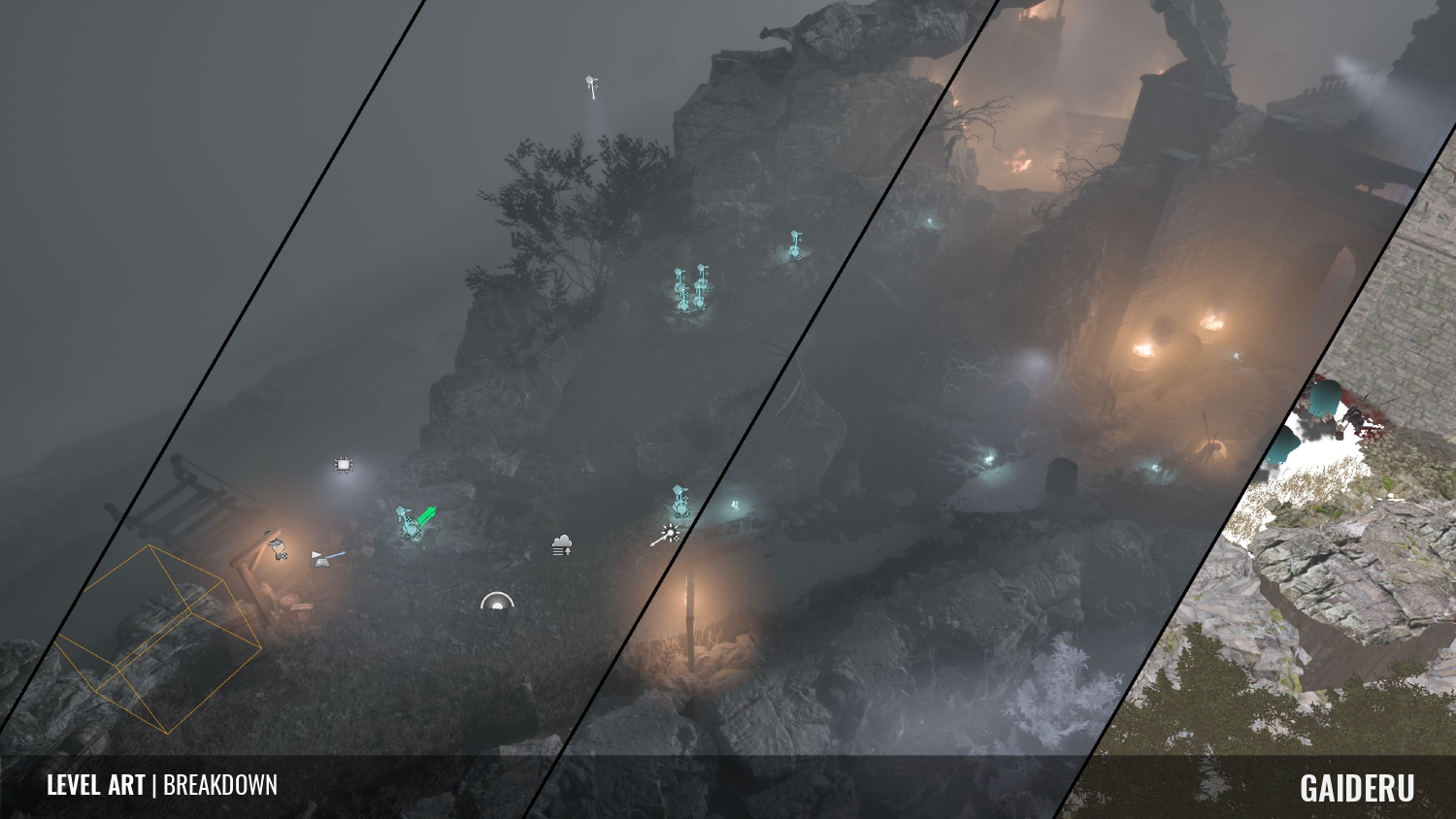 Помимо дипломного проекта, Константин представил ещё 2 локации, выполненные за период обучения на дисциплинах Level Art и «Стилизованное окружение». В совокупности они демонстрируют развитие навыков и умение собирать сцены разного масштаба для портфолио.