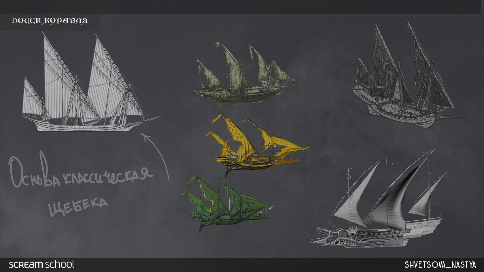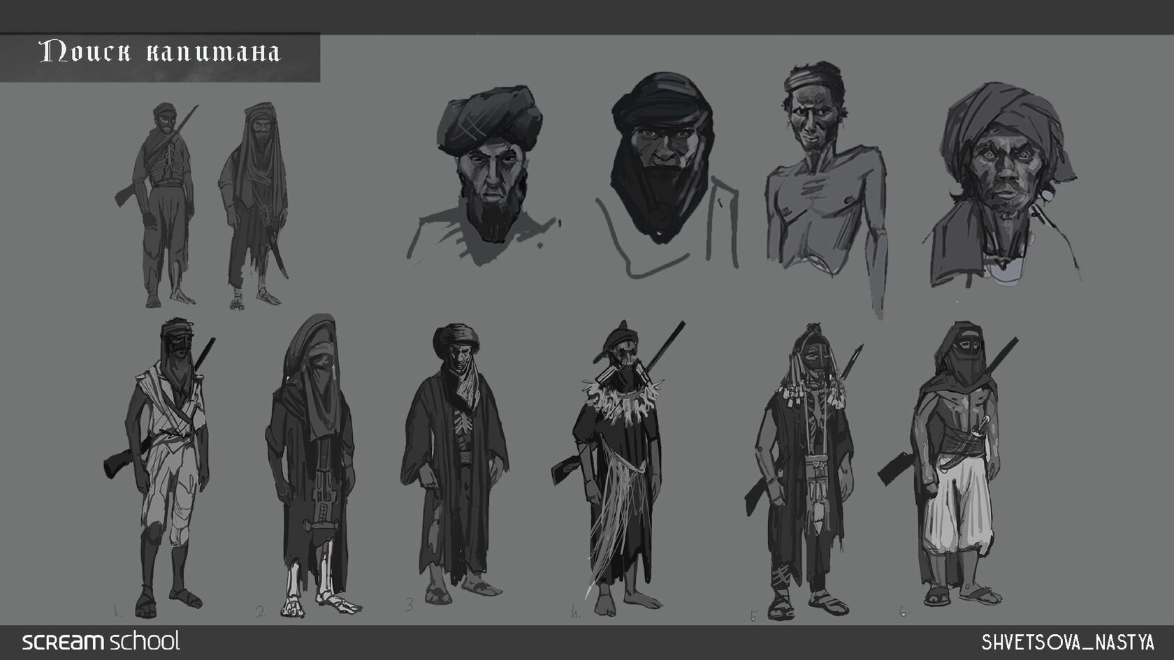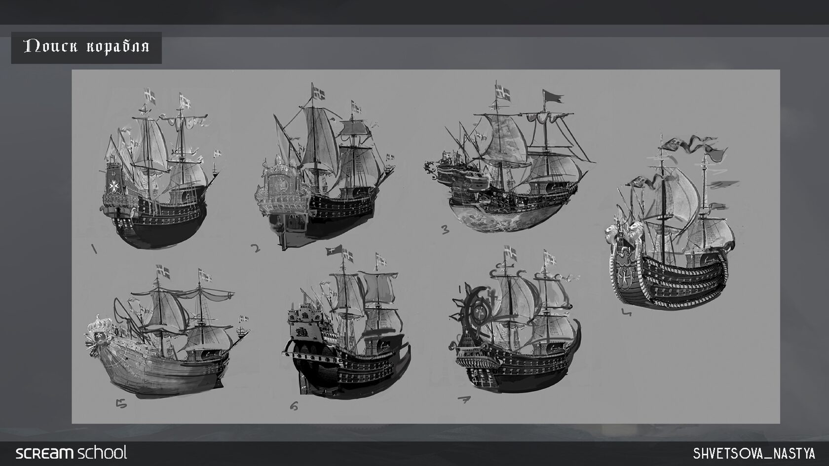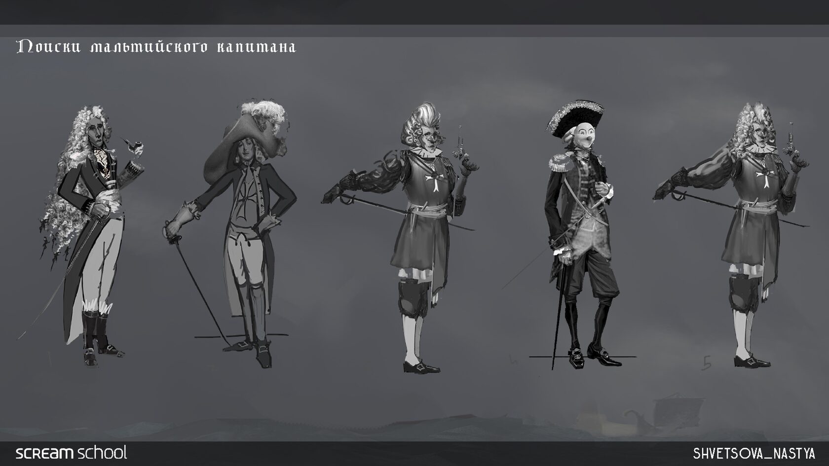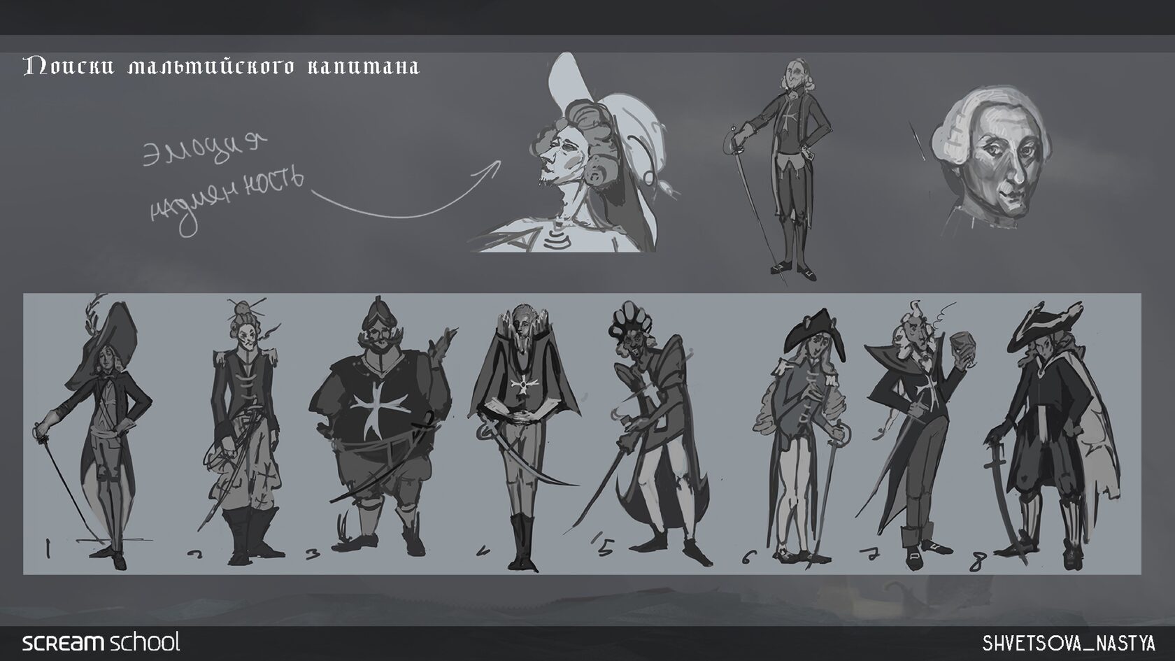 В ходе работы были разработаны капитаны, дизайн кораблей, игровые локации и иллюстрации. Проект прошёл все этапы производства концепт-арта: анализ референсов и исторического контекста, поиск визуального стиля фракций, создание персонажей и окружения, а также подготовку финальных иллюстраций для игрового проекта.